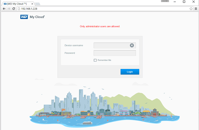 I have just set up my mycloud and things are mostly working, but I can’t log in through the interface directly on the device (using the local ip address). When I open a browser to that, I get a log in screen requesting Device username and Password, but whatever I type in it rejects and says “Only administrator users are allowed.” Aren’t I the administrator? I am able to log in using the web address (files.mycloud.com).